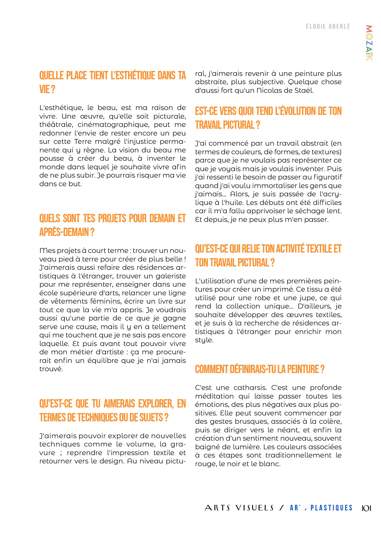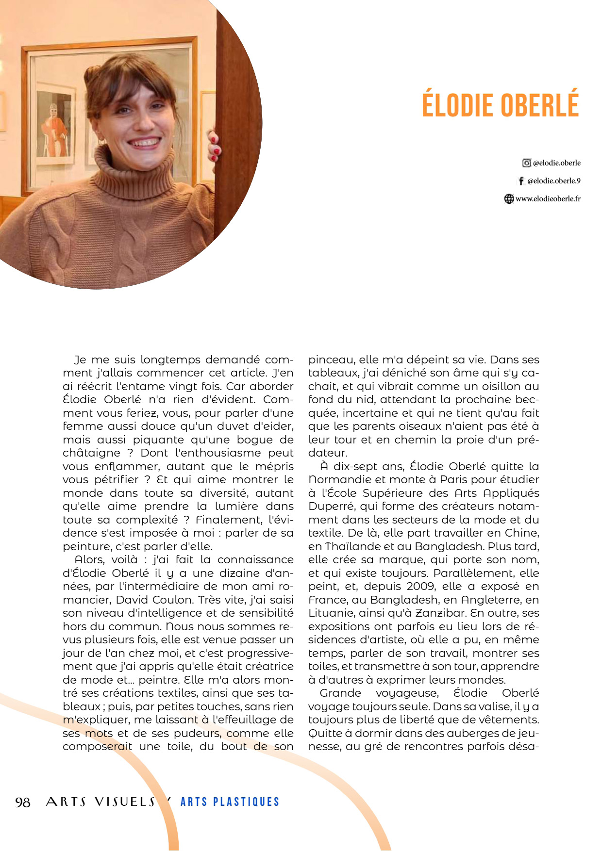 Mozaïk magazine devotes an article to Élodie Oberlé, reflecting on her career, her artistic approach, and her connection between painting, travel, and textile design.
